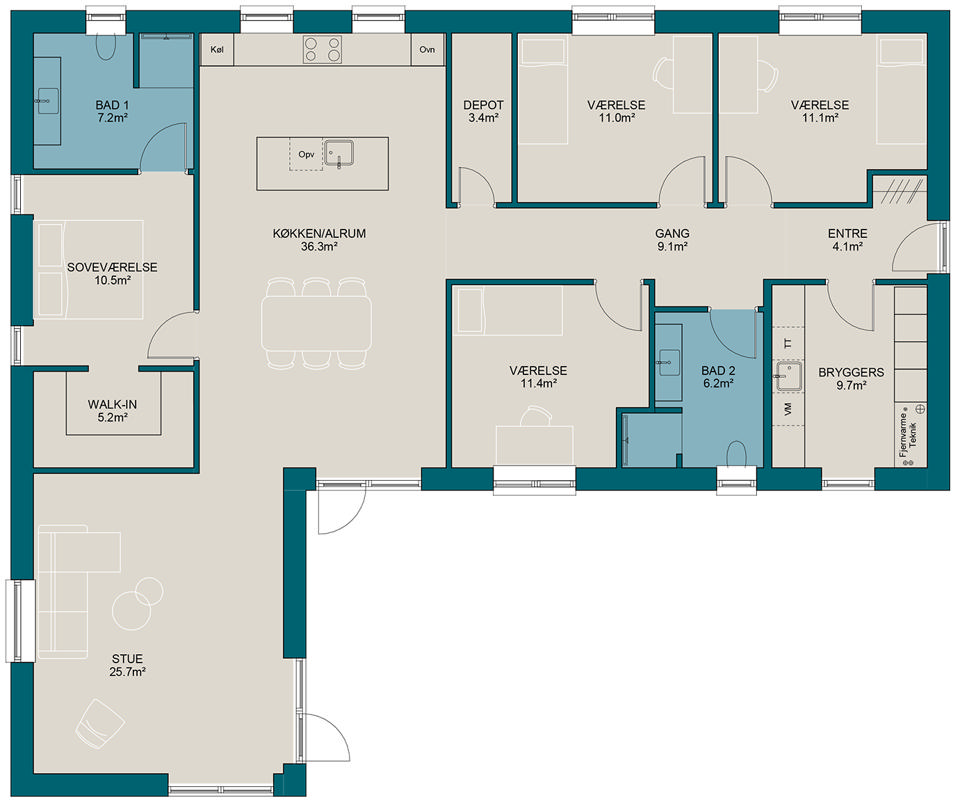• Fri indretning af planløsning i samarbejde med vores tegnestue