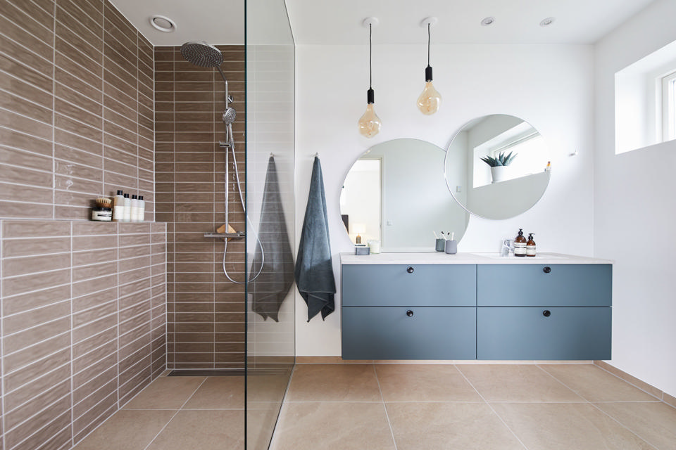 Badeværelset er ikke bare et rum for lukkede døre. Det er også her, dagen starter. Derfor gør stadig flere nybyggere meget ud af indretningen og vælger for eksempel at lade en rød tråd løbe fra resten af husets indretning og ud i badeværelset.
