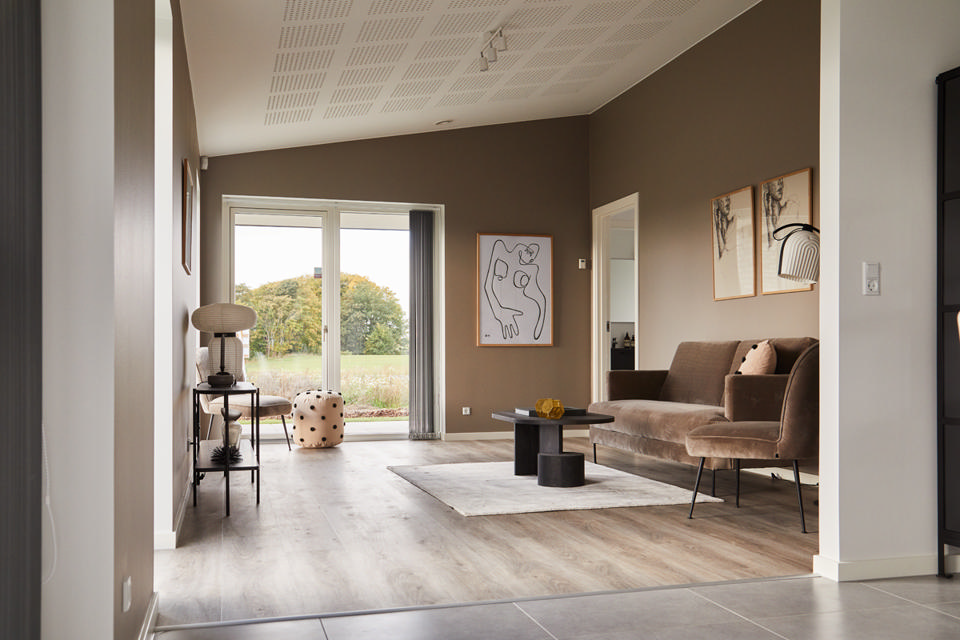 Skal stuen også være frirummet, hvor der er mulighed for at koble fra og kunne kigge ud i omgivelserne - mærke dem og føle roen i kroppen. Så vil valget af store vinduespartier bringe jer helt tæt på haven og naturen - overvej eventuelt også, om der fra stuen skal være direkte adgang til terrassen, hvor sommeraftenerne kan nydes.