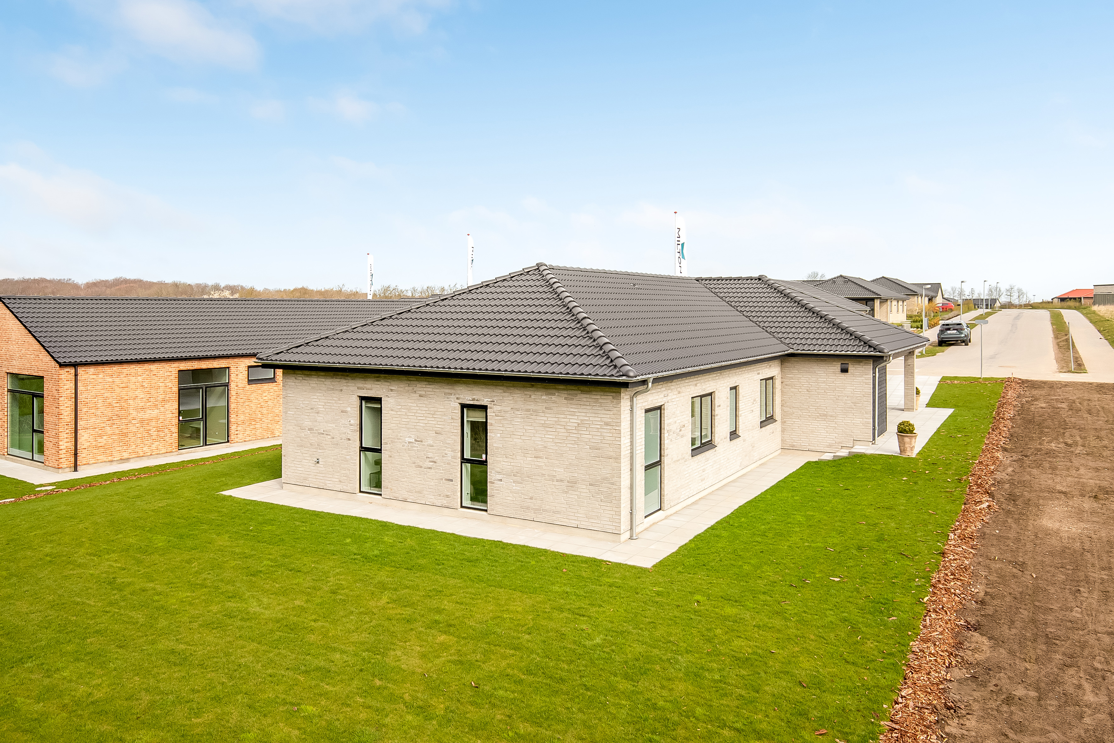 - Tagbeklædning: Sorte betontagsten