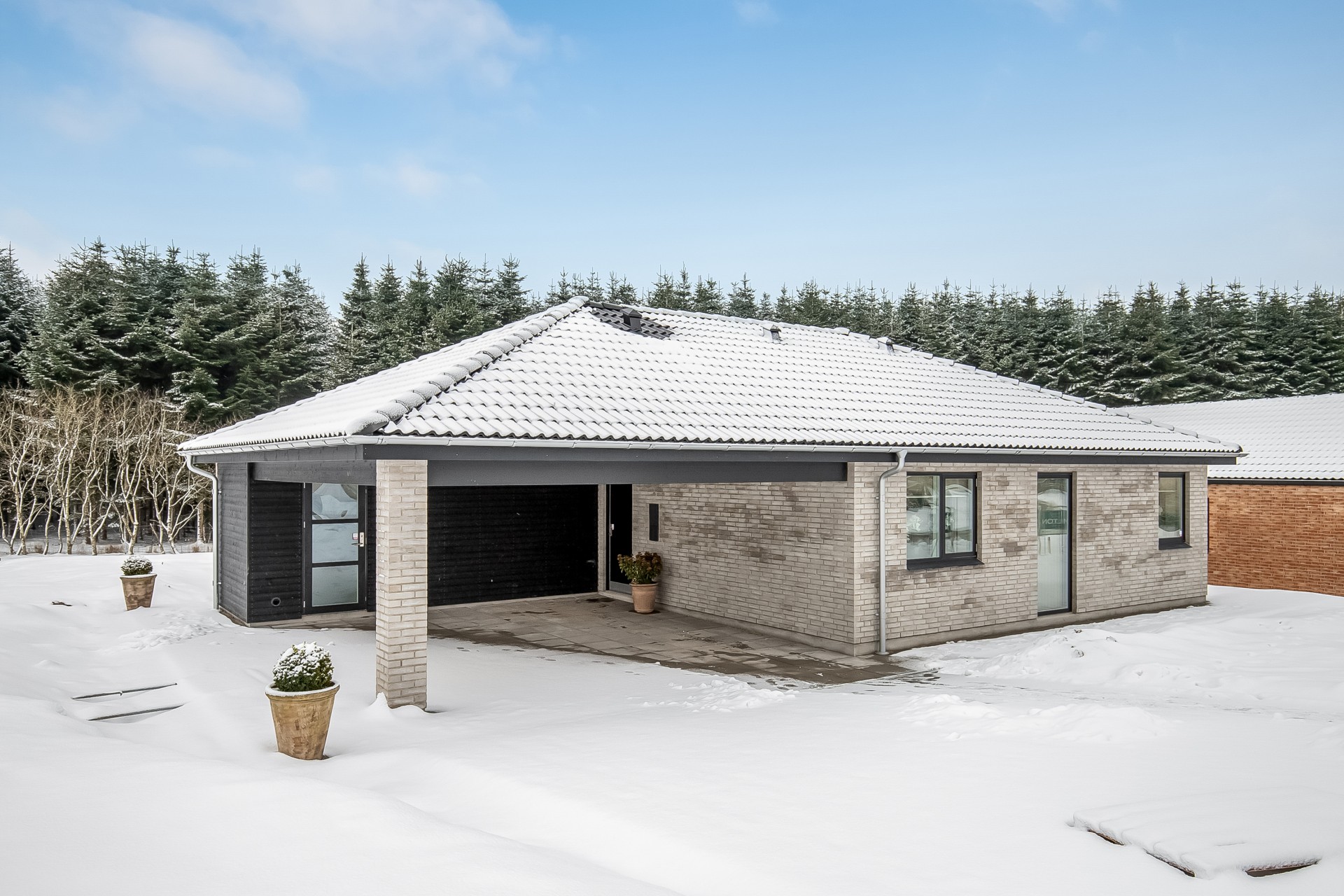 - Tagbeklædning: Sorte betontagsten