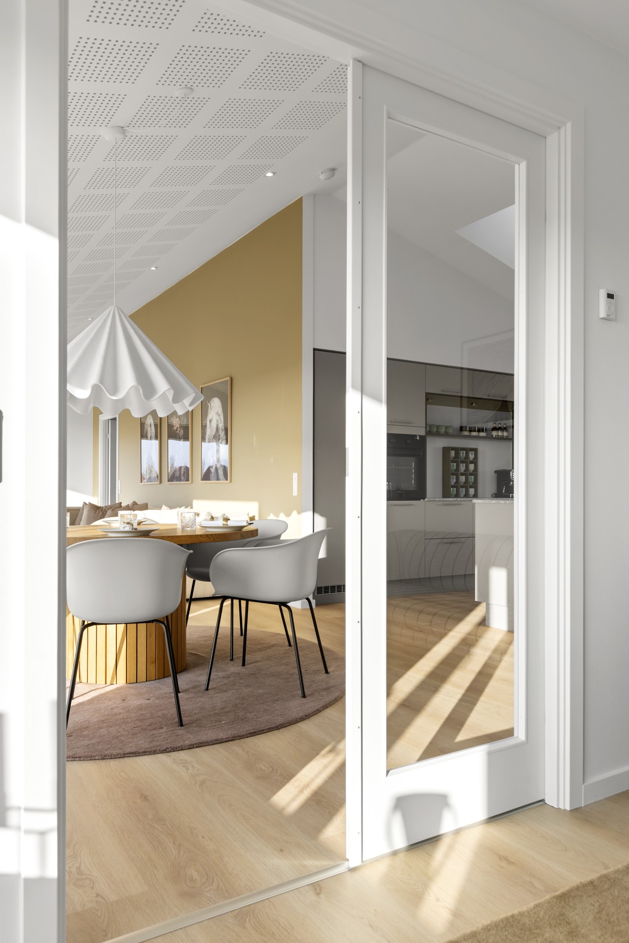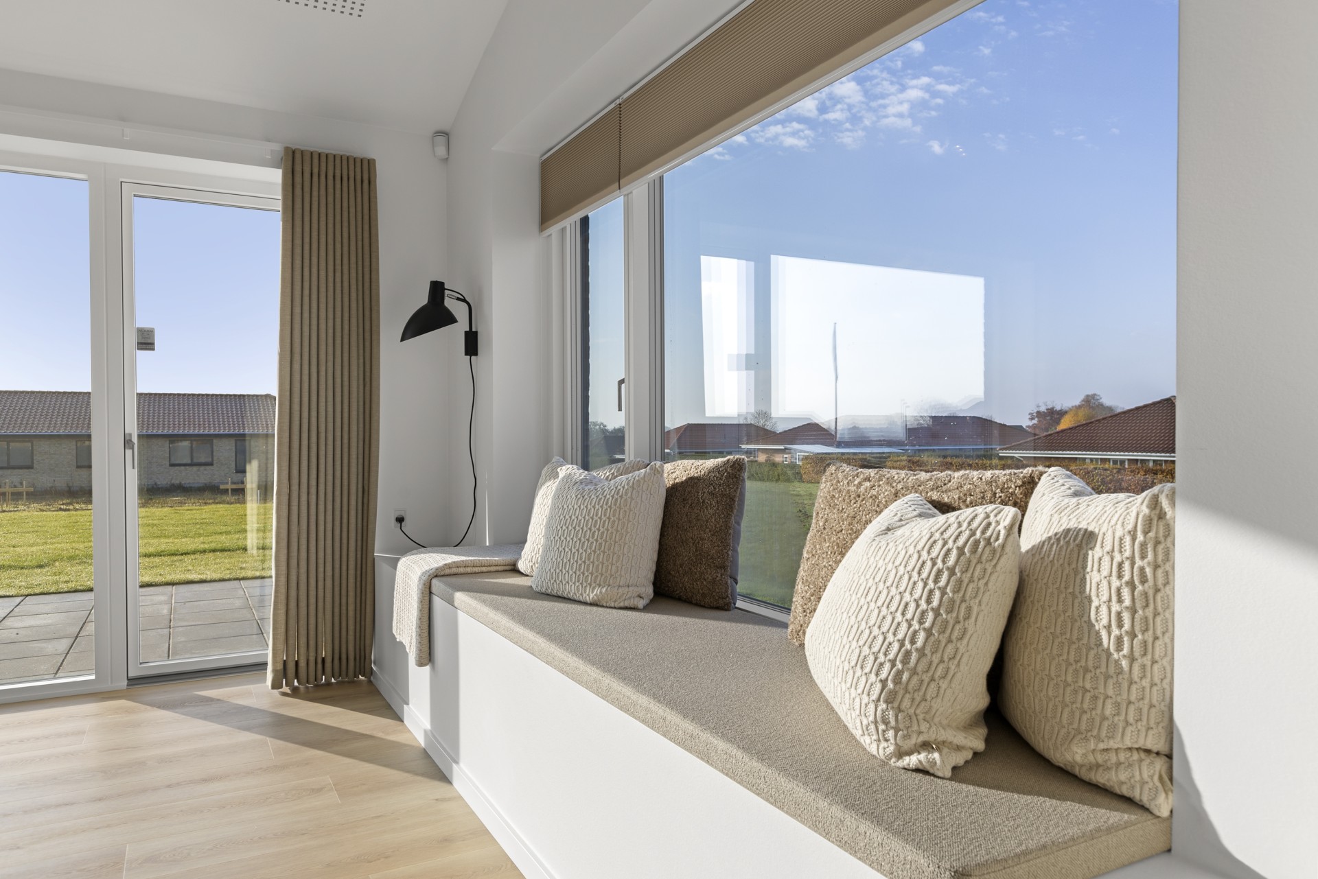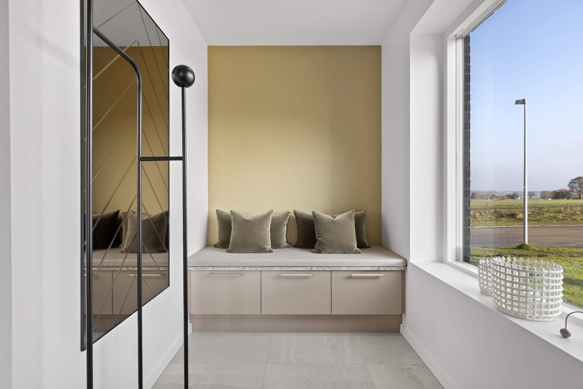 Huset ligger sammen med et andet udstillinghus, så der er mulighed for at opleve to forskellige boliger på sammen sted. Kom forbi til åbent hus på søndag.