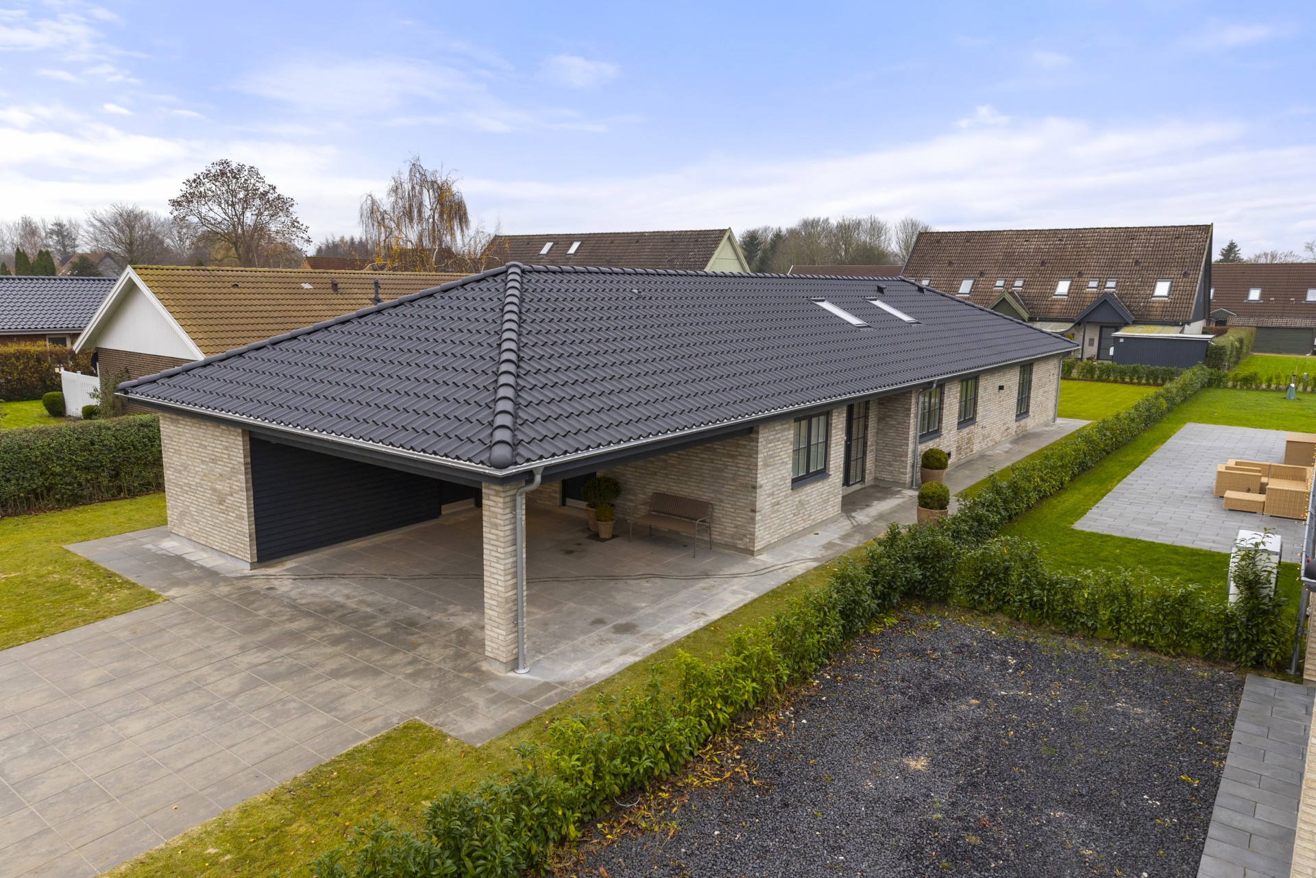 - Tagbeklædning: Sorte betontagsten