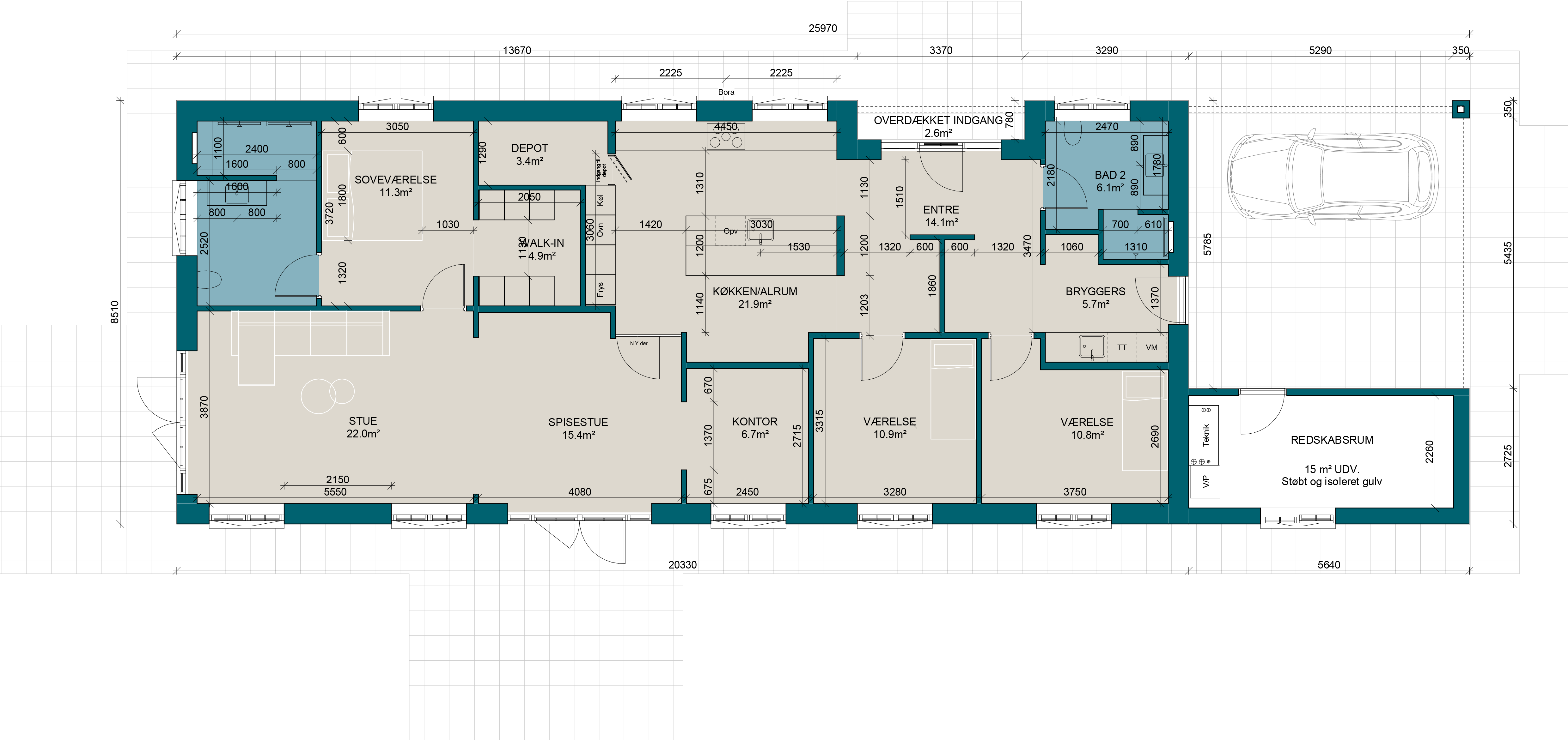 - Boligareal: 170 kvm