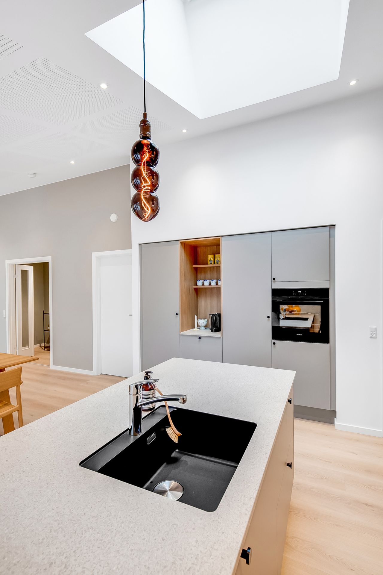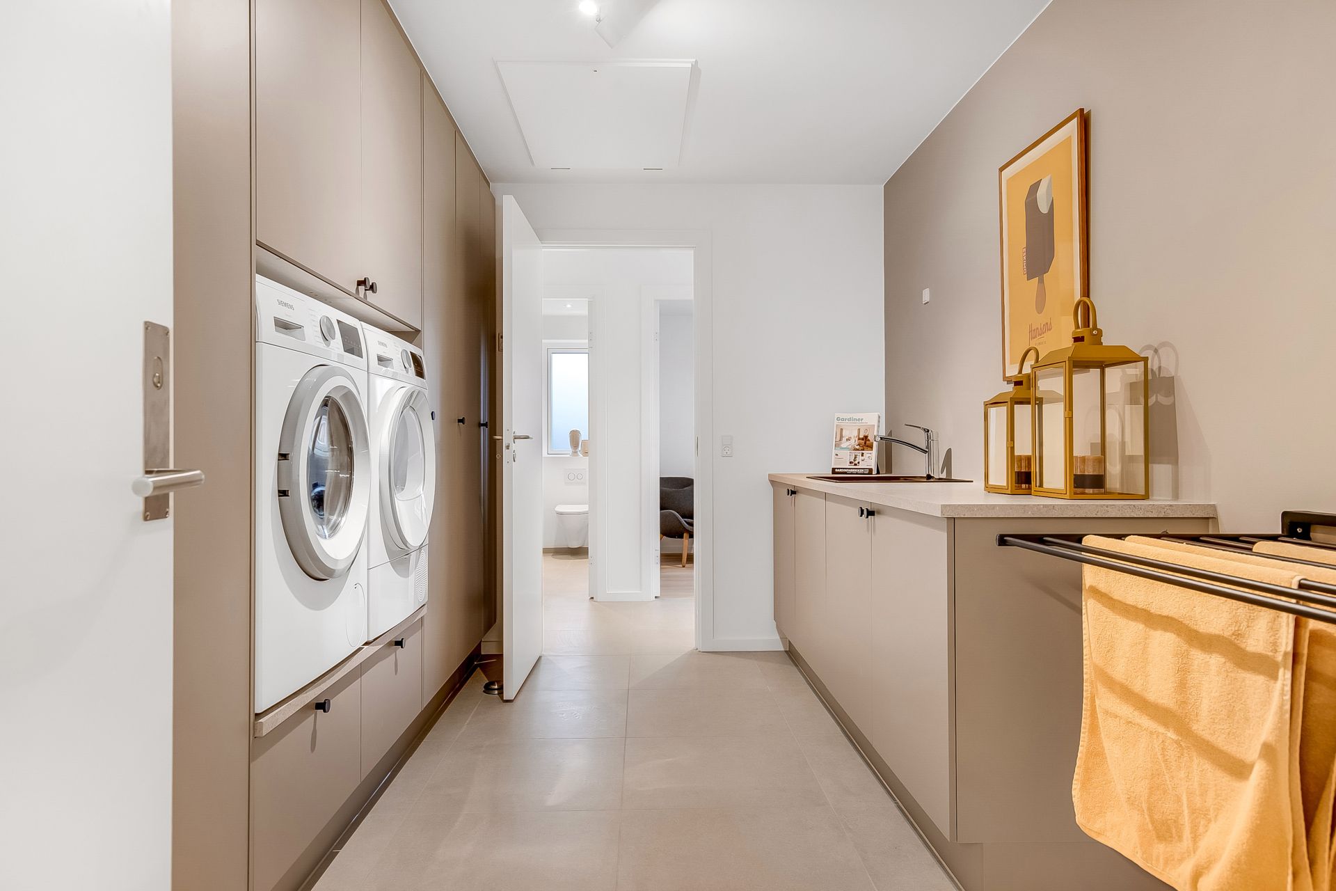 Et praktisk og velindrettet hjem, hvor arkitektur og hverdagsfunktioner er nøje afstemt.