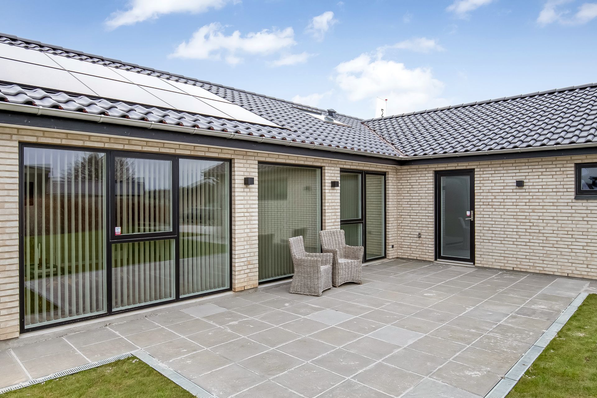 - Tagbeklædning: Sorte betontagsten